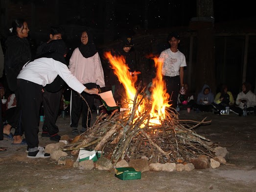 Kami memulai pemberangkatan pada pukul 08.00 WIB dari sekolah menggunakan beberapa bus, sesampainya di sana kami melakukan briefing dan makan siang. Kami memulai dengan semangat membangun tenda, menata setiap sudut dengan cermat, dan menyusun peralatan berkemah dengan penuh kolaborasi. Apalagi suasana dan cuaca yang cerah dan sejuk menambah keasyikan dan keseruan tak peduli dengan udara dingin yang seakan menguliti tubuh. Langit malam menjadi saksi saat sesi api unggun, suasana hangat tercipta melalui Makrab, di mana cerita dan tawa bersahut-sahutan di sekitar api unggun, memperkuat ikatan antar anggota. Di balik hangat nyala api unggun tersimpan cerita dari peserta dengan mencari ranting pohon di sekitar lokasi perkemahan…wouuww seru, kan!